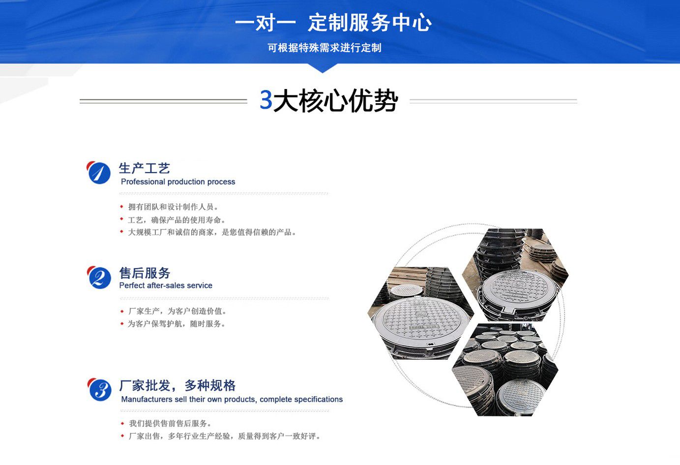 山東聊城健暉鑄造有限公司主營各種球墨鑄鐵井蓋,球墨鑄鐵防盜井蓋,球墨鑄鐵方形井蓋,球墨鑄鐵井蓋廠家等產(chǎn)品,可廣泛應(yīng)用于市政建設(shè)、軌道交通設(shè)施、城市園林綠化、安防配套設(shè)施、石油化工等諸多領(lǐng)域。  產(chǎn)品采用良好的工藝流程,以確保產(chǎn)品質(zhì)量的穩(wěn)定性:以良好的檢測設(shè)備,確保質(zhì)量的可靠性。廣泛應(yīng)用于國內(nèi)外城市的市政建設(shè),通信,自來水,消防,園林,環(huán)保等行業(yè),產(chǎn)品大獲贊譽!  我們堅持“質(zhì)量為本、用戶至上、科技創(chuàng)新、科學(xué)管理”的經(jīng)營方針。  面向未來,我們積極響應(yīng)新時代的號召,走“一帶一路”、堅持“綠色環(huán)保”的國家方針政策,秉承“安甄致選,普利天下”的企業(yè)理念,共同鑄就新時代的輝煌篇章。...